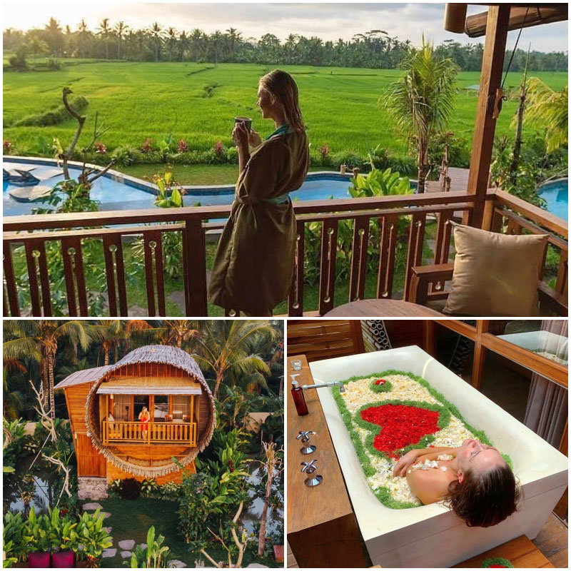Wouldn’t you love to enjoy a delicious meal or swim in the infinity pool overlooking the infamous Tegallalang rice terraces?