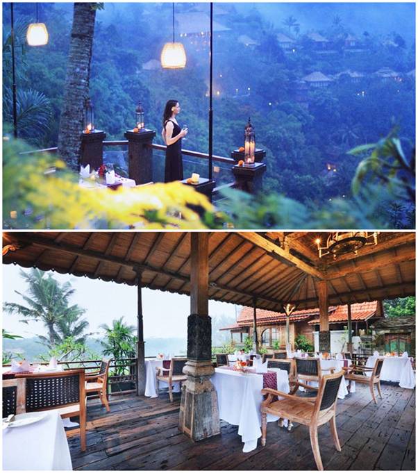The Sayan House is romantic restaurant on the top overlooking the Ayung River, surrounded by lush greenery and serenity