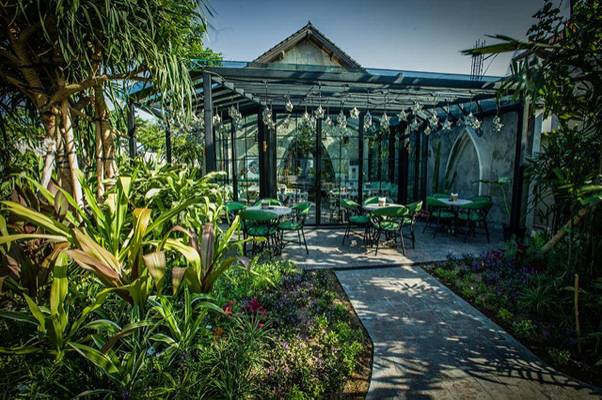 Imagine eating in a gothic glasshouse encompassed by rich greenery, where everything turns otherworldly in the nights as the pretty lights come to life.