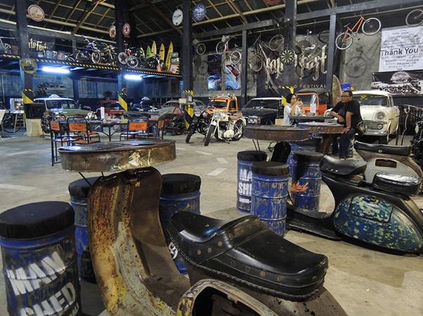 But the major reason why Man Shed is quite popular is because you can discover antique motorcycles out here. Bajajs, and the latest addition – a 1945 HD military bike complete with side-car and a fish tank and many more new installations attracts the old customers to spend quality time out here.